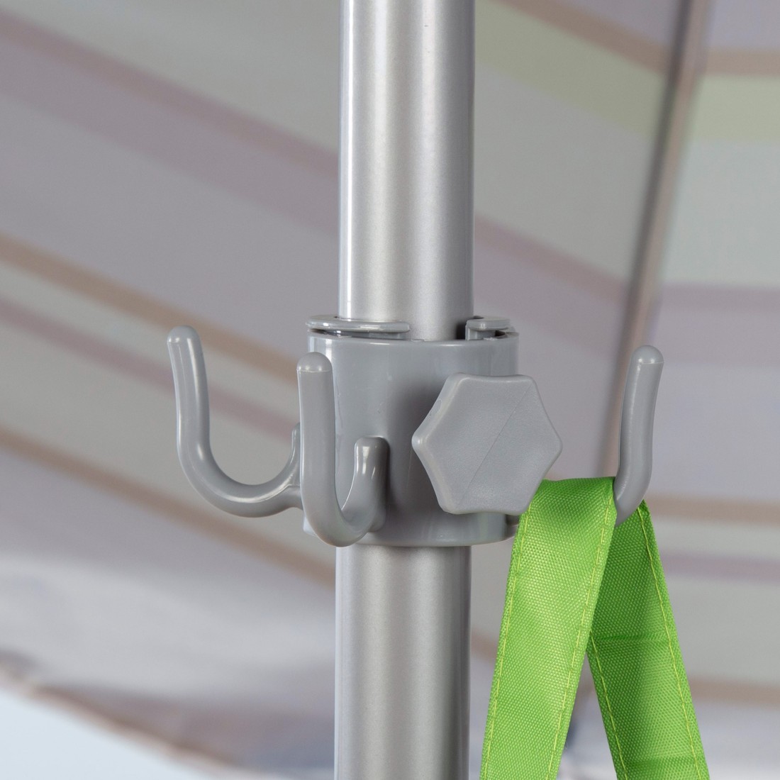 - Mástil inclinable: sistema intuitivo y fácil de ajustar que permite reorientar la sombrilla para conseguir la sombra perfecta en todo momento